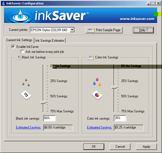 the main InkSaver dialog box,