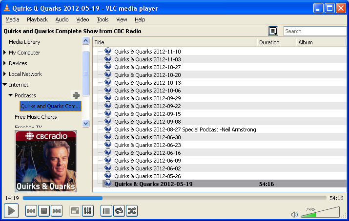 and select Copy link, in my case I got http://www.cbc.ca/podcasting/includes/quirksaio.xml. Finally move your mouse over the
