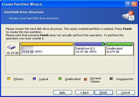 partition, and review the modified disk structure, prior
