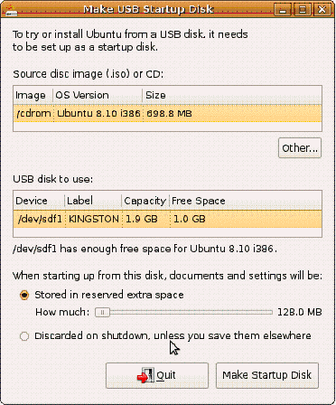 Ubuntu 8.10 boots from the USBkey, just as it would from