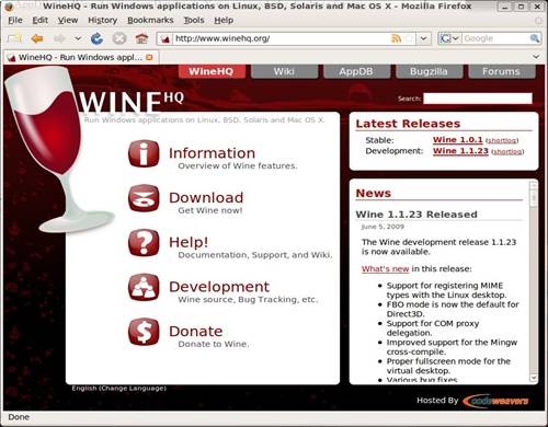 Wine HQ (http://www.winehq.org/), including a very interesting