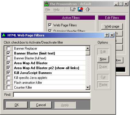 various filters on or off. Right after installing Proxomitron, I loaded